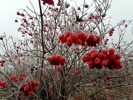 Красота природы. Холодная погода, но яркая кисть калины согревает природу своей красотой.