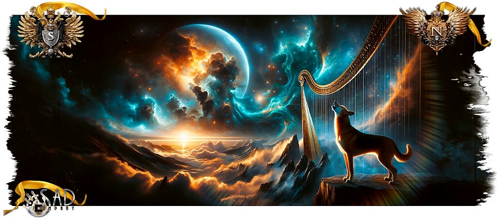 Есть произведения, которые существуют вне времени и жанров. Они не просто звучат — они дышат, пульсируют, увлекая слушателя в иные миры, сотканные из звездной пыли, музыки и пронзительных человеческих чувств. Композиция «Из созвездия Лиры», рожденная творческим союзом Сергея Sadovskij и Наталии Делювиз, — именно такое произведение. Это не песня в привычном понимании, а скорее космогонический миф, аудиальный портал в небесные чертоги, где души ведут диалог на языке орбит и созвездий. Приложенное изображение — с его небесной арфой, космическими туманностями и волком, воющим на вечную луну — служит идеальным визуальным эпиграфом к этому путешествию.